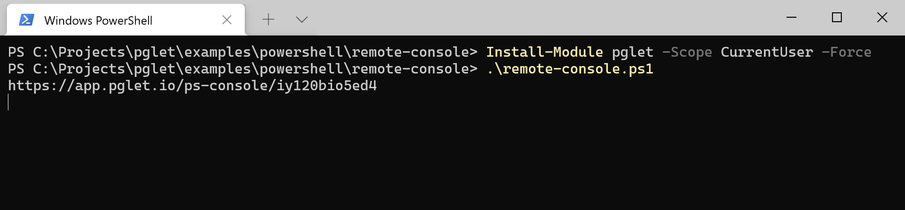 After publishing this post on Reddit PowerShell community we received great feedback about security. Currently Pglet service is in preview and is not recommended for use in production. We are working on built-in authentication/authorization functionality at the moment. It's going to be "Login with GitHub/Google/Microsoft" OAuth at first plus OpenID for any other providers.