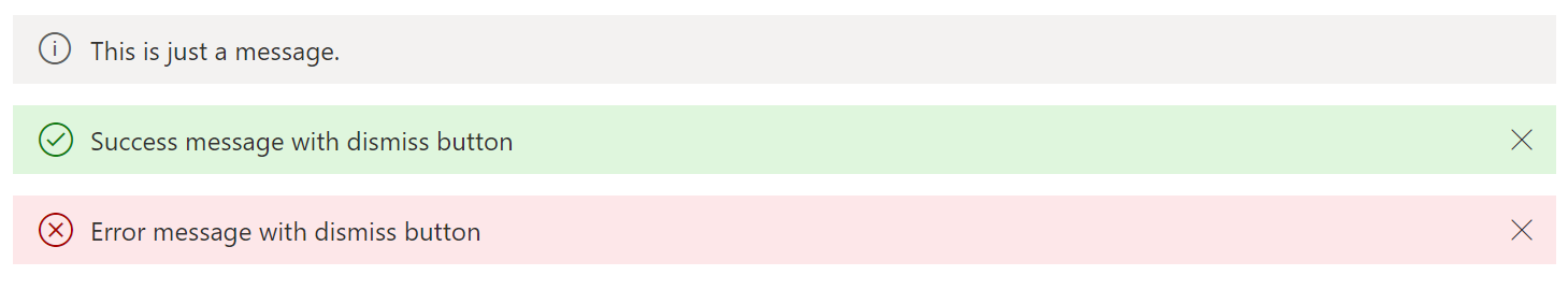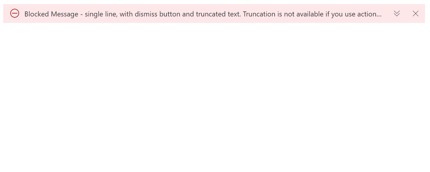 truncatedboolfalseDetermines if the message bar text is truncated. If true, a button will render to toggle between a single line view and multiline view. This prop is for single line message bars with no buttons only in a limited space scenario.